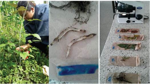 Se tomaron muestras de hojas, tallos, frutos y flores, se rotularon para posteriormente llevarlas al laboratorio de fitopatología de la Universidad de los Llanos en Villavicencio, Meta. Esta actividad se realizó 4 veces durante el ciclo del cultivo de la mora de castilla.