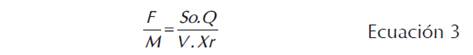 Adicionalmente, se calculó (F/M) como parámetro de control utilizando la ecuación 4.
