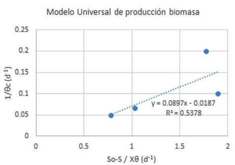 A partir de los resultados obtenidos de las figuras de regresión lineal se obtuvieron las constantes cinéticas de remoción de sustrato y producción de lodo (Tabla 7).