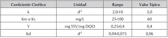 Determinación de constantes cinéticas y estequiométricas del sistema reactor flujo pistón de lodos activados. Logradas las condiciones de estabilización del reactor se comenzó el tratamiento del líquido residual. Se registraron los valores promedio de Demanda Química de Oxígeno (DQO) y Sólidos Suspendidos Volátiles en el licor mezcla (SSVLM) a través del tiempo y se ajustó la curva que mejor se adaptó empleando las ecuaciones cinéticas descritas en la Tabla 4. Los valores de los coeficientes cinéticos fueron estimados por medio de análisis de regresión de los datos experimentales. En este estudio se determinó el coeficiente de velocidad media (KS), la tasa máxima de degradación de sustrato (k), el coeficiente de producción de biomasa (Y) y la velocidad de decaimiento o muerte de microorganismos (kd).