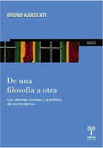 De una Filosofía a otra: Las Ciencias Sociales y la Política de los Modernos, es un libro que propone repensar la génesis y la significación de las Ciencias Sociales a partir de su diálogo con la Filosofía, en particular con la Filosofía Política. La propuesta de Bruno Karsenti, es sin duda una de las más novedosas reformulaciones de la problemática de la Filosofía de las Ciencias Sociales, ya que su enfoque cuestiona la orientación puramente epistemológica que predomina en los estudios anglosajones vinculados a este campo. El libro fue publicado en 2013 en Francia bajo el título D’une philosophie à l’autre. Les sciences sociales et la politique des modernes, y la traducción al castellano llegó en septiembre de 2017, publicada por la Universidad Nacional de San Martín en Buenos Aires, Argentina. El libro merece una revisión por parte de todo aquel que esté interesado en la historia de las Ciencias Sociales y de la Filosofía Política, en su vinculación con el desarrollo de la modernidad. Lo que propone el autor en su libro, en efecto, es redefinir la relación entre Filosofía y Ciencias Sociales para repensar la política de los modernos, alejándose del clásico debate teórico-metodológico.