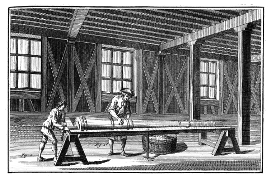 Grabados tomados de DIDEROT Denis y Jean Le Rond D’ALEMBERt (coords.), Encyclopédie ou Dictionnaire raisonné des sciences, des arts et des métiers, París, Imprenta de Briasson, 1767, t. V, “Fonderie des canons”, láminas XI-XVI, s. pp.
