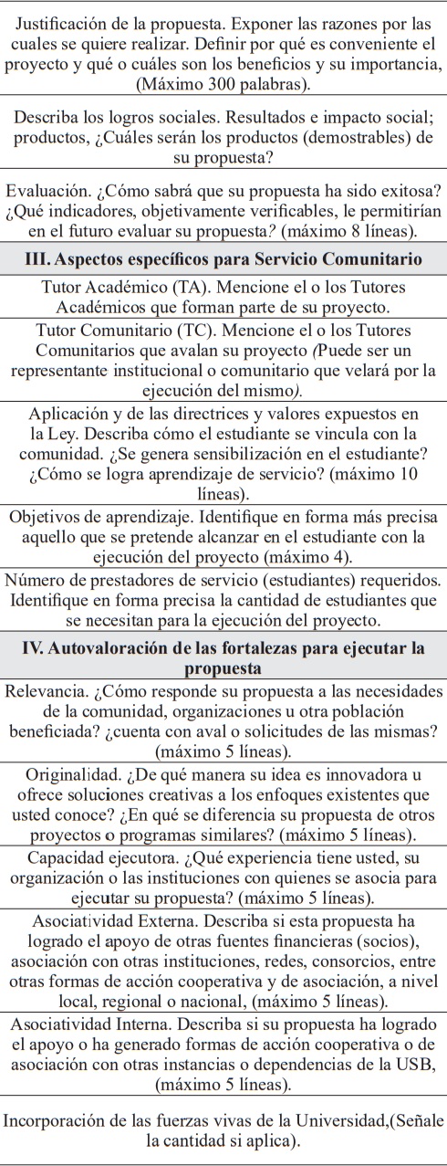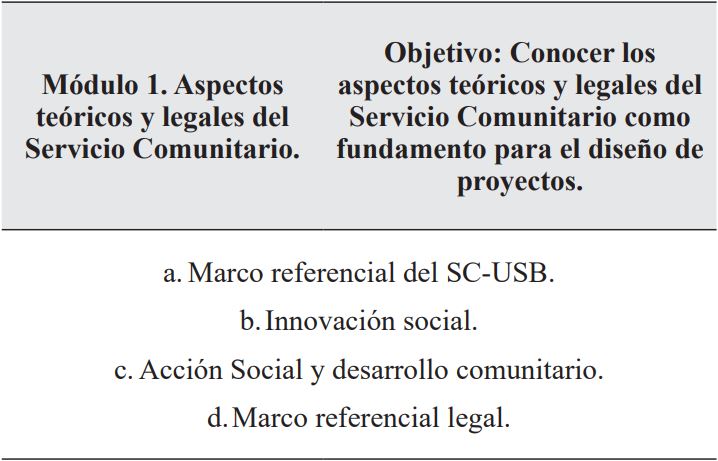 Por otro lado, se plantean aspectos conceptuales y legales sobre servicio comunitario, proyecto, metodología aplicada para la elaboración del programa de formación, contenido que forma parte del programa de formación, resultados y discusión, finalmente, algunas consideraciones resultantes del presente trabajo.
