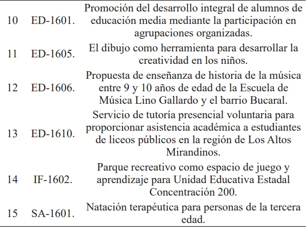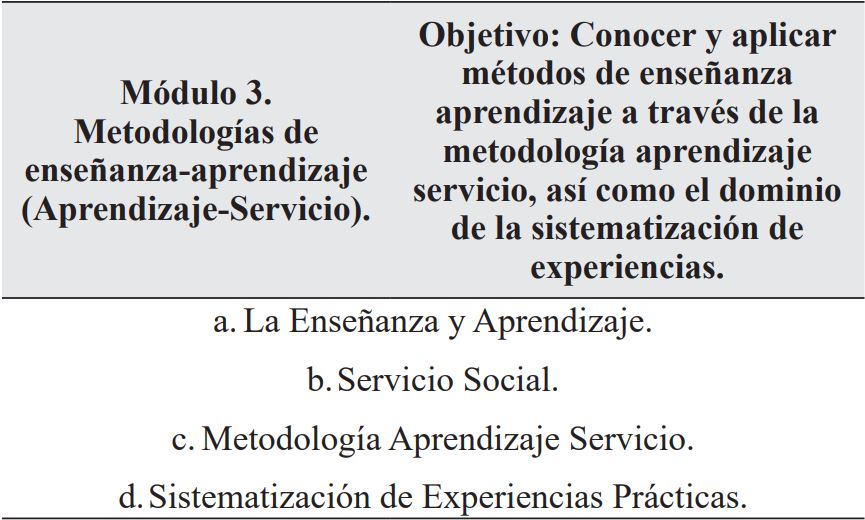 Abstract: The purpose of this article is to present the elaboration and execution of the training program for the design of community service projects carried out at the Simón Bolívar University, in addition to contributing with this experience to the construction of contents that allow the development of Skills and abilities of those responsible for guiding community service in universities; For this purpose, conceptual aspects inherent to community service and projects are shown. The methodology applied to the training process called direct teaching and the project as a working tool and evaluation of the participant. The objective of the program, which is to offer tools for the design of community service projects, contains five modules, their objectives and contents, which highlight the design, which shows the format created for the development of social projects. Achievement through the participation of 38 teachers and the products resulting from them; finally, as conclusions, the importance of offering complementary tools for designing social projects for the teacher, improving projects and responding to the mandate of the Community Service Law is revealed.
