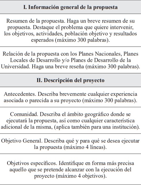 Módulo 5. Diseño de proyectos sociales, el cual tiene por objetivo el diseño de proyectos de servicio comunitario; en este módulo se pone en práctica los conocimientos adquiridos, a través del llenado de un formulario para la propuesta de proyectos, el mismo fue elaborado, incluyendo aspectos de servicio comunitario y requerimientos específicos para tal fin: