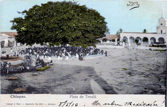 Para 1900, el Departamento de Tonalá tenía diversos asentamientos en su demarcación. Eran los tiempos del presidente Porfirio Díaz con su política basada en el orden y el progreso, que procuraba la introducción de líneas férreas y la promoción de inmigrantes.3 Al departamento de Tonalá llegaron muchos extranjeros en viajes de exploración, como Franklin Everett y Alfred B. Lyon, originarios de Nebraska, Estados Unidos, quienes en 1900 recorrieron la región para una posible inversión ferroviaria, cristalizada en 1902 con la concesión obtenida para construir el Ferrocarril Panamericano4 (Everett 1916).