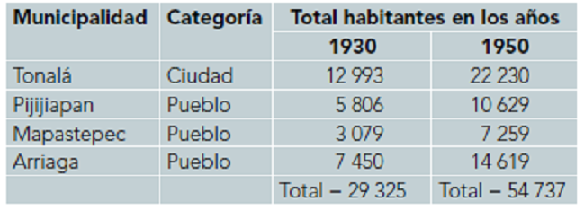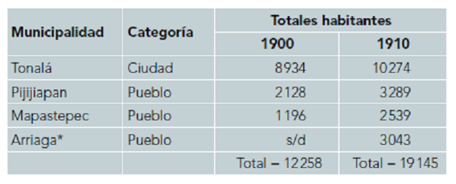 El crecimiento en la primera década de siglo XX refleja una circunstancia respecto de la región de Tonalá como destino para los extranjeros y comerciantes que buscaban tierras fértiles para iniciar negocios.