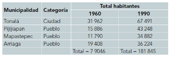 Gran cantidad de naturales chiapanecos de otras regiones sentaron también su residencia en estas cuatro localidades, en su mayoría refugiados por la pasada guerra, hecho que contribuyó al crecimiento de la población (Cuadro 5).