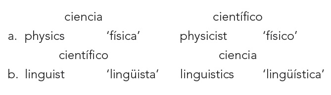 Haspelmath (1993) aborda el tema de los pares de verbos incoativo-causativo considerando varios datos e indica que la dirección de la derivación no es universal, por ejemplo, en inglés el nombre de la ciencia puede ser la palabra básica y el científico la palabra derivada o a la inversa, como lo ilustran los ejemplos en (23).