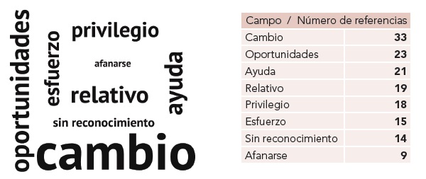 Otra de las principales categorías expuestas es que ser universitario se traduce en oportunidades para conseguir un futuro deseable, bajo la idea instituida de que mediante la educación se puede escalar dentro de la estructura social: