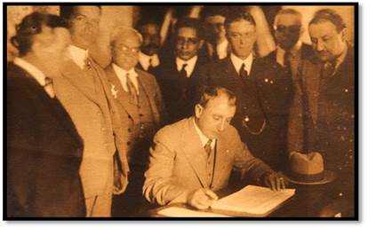 Las obras analizadas constituyen, a su vez, un incentivo para dilucidar una temática descuidada en la historiografía centroamericana: las actividades de los grupos fascistas en la región y la relación de los gobiernos autoritarios con los de Franco y Mussolini en los treinta. Sobre el tema aparecen indicios en los archivos, periódicos y publicaciones recientes (Taracena, 2017). Pienso, como modelo a emular, en el trabajo de Luigi Calò Carducci sobre el Perú, donde examinó el proceder de un gobierno que, sin tener una influencia marcada como Argentina o Brasil, vivió una luna de miel con el fascismo italiano (Calò, 2007). ¿Por qué Ubico y Martínez fueron de los pocos gobernantes que reconocieron al régimen de Francisco Franco? La pregunta, ciertamente, sienta rutas de investigación (véase foto 5).