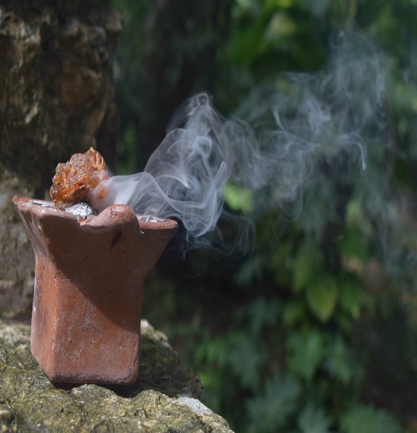 por motivo de haberse introducido a curandero le mandó cierta persona que curase a una comadre suya y con efecto habiéndola asistido sahumó a la tal enferma con un mechón de copal alrededor de la cama diciéndole que se moría, de lo cual resultó que la enferma dio muchos gritos, y si ella como la demás gente de la casa se atemorizaron y el otro mulato salió corriendo y arrojó el copal al cual no pudieron hallar.30