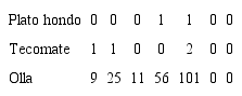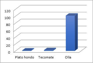 La Tabla 4 exhibe una marcada diferencia entre las frecuencias de las tres variedades. La vasta cantidad de ollas contrasta con los pocos ejemplares de platos y tecomates, hace evidente la preferencia por una forma en particular (véase Figura 14). Este patrón de comportamiento selectivo permite clasificar la forma de la vasija como un atributo funcional. Con respecto al conjunto cerámico del Posclásico Tardío, no hubo formas identificables, ya que solamente se localizaron «posibles bordes» en toda la colección.