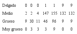El tercer atributo bajo análisis fue el grosor de la pared y presentó cuatro variedades en total (véase Tabla 3).