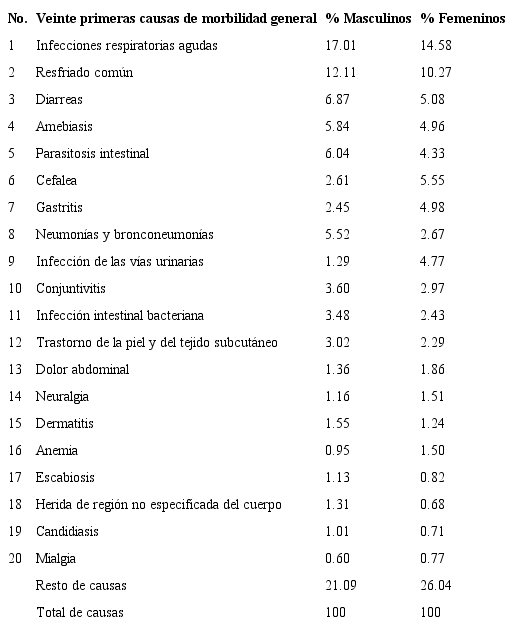 Como ya se ha descrito, las condiciones sociales en las que se inserta la comunidad guatemalteca inciden evidentemente en su morbilidad. Según los registros del MSPAS,18 la mayoría de los padecimientos reportados en consulta para todo el municipio de Sibinal están relacionados con factores del entorno ambiental como el clima, la geografía (terrenos montañosos) y determinantes sociales de la salud que permiten entrever la exclusión (índice de pobreza de 97.92%, es uno de los municipios priorizados por desnutrición, por ejemplo). También destacan la ocupación laboral (campesinos) o las condiciones de higiene inadecuadas. En general, priman las afecciones respiratorias, gastrointestinales, infecciones de tipo fúngica, viral, por acari o bacteriana, anemias y heridas (MSPAS, 2013), tal y como se aprecia en el Cuadro 1:
