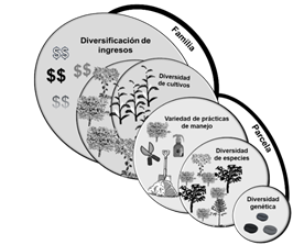 Los sistemas que presentan heterogeneidad de componentes generalmente son más resilientes que los sistemas que tienen mayor homogeneidad en su composición. Ello debido a que la redundancia que provee la diversidad funciona como respaldo en caso de que un componente del sistema se vea afectado (Kotschy, Biggs, Daw, Folke y West, 2015). Sin embargo, la diversidad tiene un costo asociado a la pérdida de eficiencia del sistema. En específico en relación con la dimensión social (Kotschy et al., 2015), en este sentido, la clave para que la diversificación -a través de las distintas estrategias - conduzca a la resiliencia del sistema es la cohesión y organización familiar y la administración de los acervos familiares durante los periodos de estabilidad y de crisis.