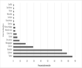 …el café que siempre se ha cosechado aquí en el país es el Típica, el Bourbon, el Caturra; esos cafés que estamos sembrando apenas (refiriéndose a los híbridos de Timor) no se habían visto, a lo mejor ya estaban; yo apenas me he dado cuenta con esa variedad del café que sí es resistente a la roya, pero no se ha visto todavía el futuro de ese café, de cómo vaya a funcionar. Lo que es el Bourbon, el Marago, pues es el café conocido de hace años… (Caficultor, 53 años).