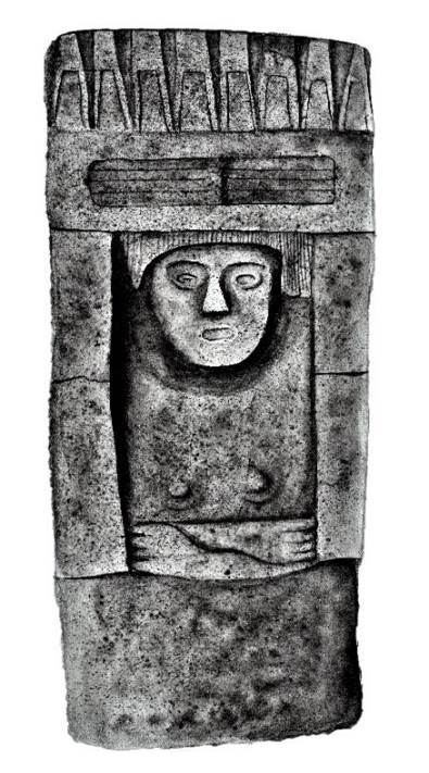 Una situación especial -que apoya estas hipótesis en torno de la significación de Teayo- es dada, a su vez, por el hallazgo de una escultura en el cerro de La Chinola, la cual presumiblemente representa a la diosa del agua mexica Chalchiuhtlicue. En el reverso de la pieza es posible ver a cuatro personajes que podrían identificarse como tlaloques, además de que se trata de quizá el único caso de manufactura de una copia prehispánica de otra escultura, la cual fue encontrada en México Tlatelolco (véase Figura 9) (Márquez, 2012b:55-61). Esta representación haría alusión a la diosa madre por excelencia.