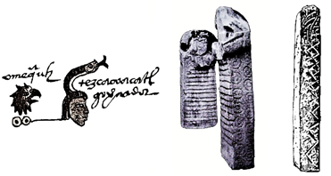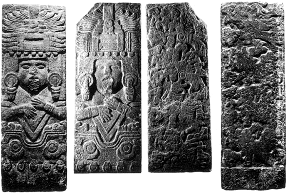 En el monumento 4 de Castillo de Teayo se aprecia una de las variantes toponímicas del lugar, y quizá la principal por provenir del análisis del dato arqueológico mismo y no de una fuente colonial. Aquí, la repetición del glifo tetzapotl «mamey» (véase Figura 1) tiene referencia explícita como locativo, de acuerdo con la propia lógica del monumento (Márquez, 2012a:115). En dicha escultura, además, se expresa el inicio de una de las tantas guerras ejecutadas hacia esta provincia de población tének2 por parte de la Triple Alianza, la cual inició en 1479 y culminó en 1480, según se registra entre los mismos glifos del monumento. Además, la importancia de la pieza radica en su carácter conmemorativo en relación con un hecho bélico, un hallazgo inusitado en relación con lo que se ha documentado en otras regiones conquistadas por los mexicas y sus aliados.