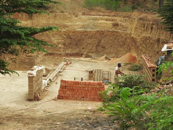 El conjunto norte contiene la estructura de mayor altura, una pirámide que alcanza cuatro metros y la acompañan otras ocho estructuras de diversos tamaños. Este conjunto se ubica detrás de una planta de gas y al sur de la actual colonia 3 de Marzo. Por su parte, el conjunto sur contiene una pirámide de tres metros de altura, también acompañada por otras tres estructuras habitacionales. La arquitectura de este sitio es de tierra, con escasa presencia de rocas. Se observaron algunas ladrilleras abandonadas y otras en uso, mismas que lentamente han destruido las estructuras y exponen los estratos con materiales arqueológicos (véase figura 7). Esta destrucción ocasiona una abundante presencia de materiales en superficie, destacando cerámica del Preclásico Medio al Postclásico. Cabe mencionar que el sitio debió tener un tamaño de al menos 20 hectáreas a la llegada de los españoles.