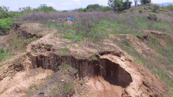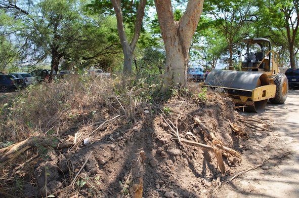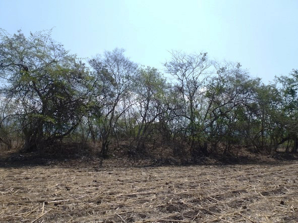 Más al norte, río abajo, localizamos un tercer sitio habitacional-ceremonial que denominamos Jardines del Grijalva en referencia a la urbanización reciente que aparentemente lo destruyó. El sitio ocupa también una colina que permitía supervisar el espacio de las terrazas naturales junto al río. Durante nuestra visita fue posible presenciar la destrucción de montículos habitacionales con maquinaria de construcción (véase figura 8).