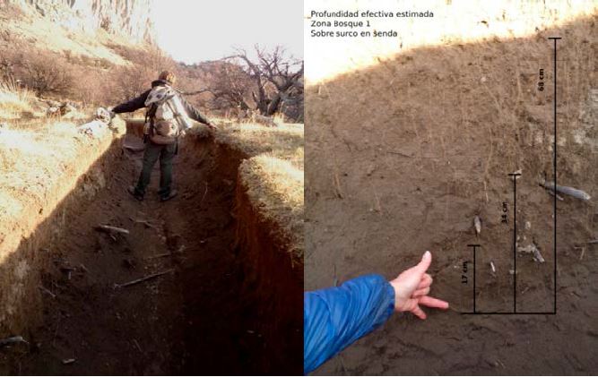 A través del transecto se pudo observar que existen diferentes grados de erosión del suelo en ciertos sectores de la senda. Como puede observarse en las imágenes de la Figura 3, el surco presenta un grado severo de erosión en el primer tramo del recorrido realizado.