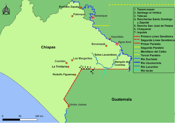 Lo anterior llevó a que el gobierno mexicano se preocupara por tener una mayor presencia y control de la franja fronteriza que va desde Santiago el Vértice, municipio de La Trinitaria, pasando por Marqués de Comillas, que comprende el Primer Paralelo (en Chiapas), para después seguir toda la rivera del Usumacinta hasta llegar a Tenosique, Tabasco (véase mapa 1). Jan de Vos señala que «no es exagerado afirmar que La Lacandona ha sufrido en el último medio siglo mayores cambios por la intervención humana que en los 500 años anteriores» (De Vos, 2020:26).