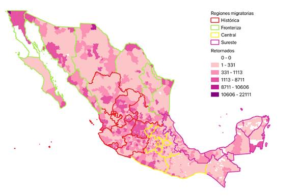 El retorno de mexicanos desde Estados Unidos cobró relevancia en los primeros años del siglo XXI, y alcanzó su volumen máximo en 2010 según cifras censales, año en el que se reportó que 832 790 personas residentes en México habían estado viviendo en Estados Unidos cinco años previos a la fecha censal (según estimaciones propias con base en INEGI, 2010), cerca del triple del número que se había registrado en el año 2000 (255 762 retornados; según estimaciones propias con base en INEGI, 2000). Para el año 2020, el censo registró 294 203 retornados (según estimaciones propias con base en INEGI, 2020), un valor más bajo respecto del que se registró una década antes, pero aún por encima del reportado en el año 2000.
