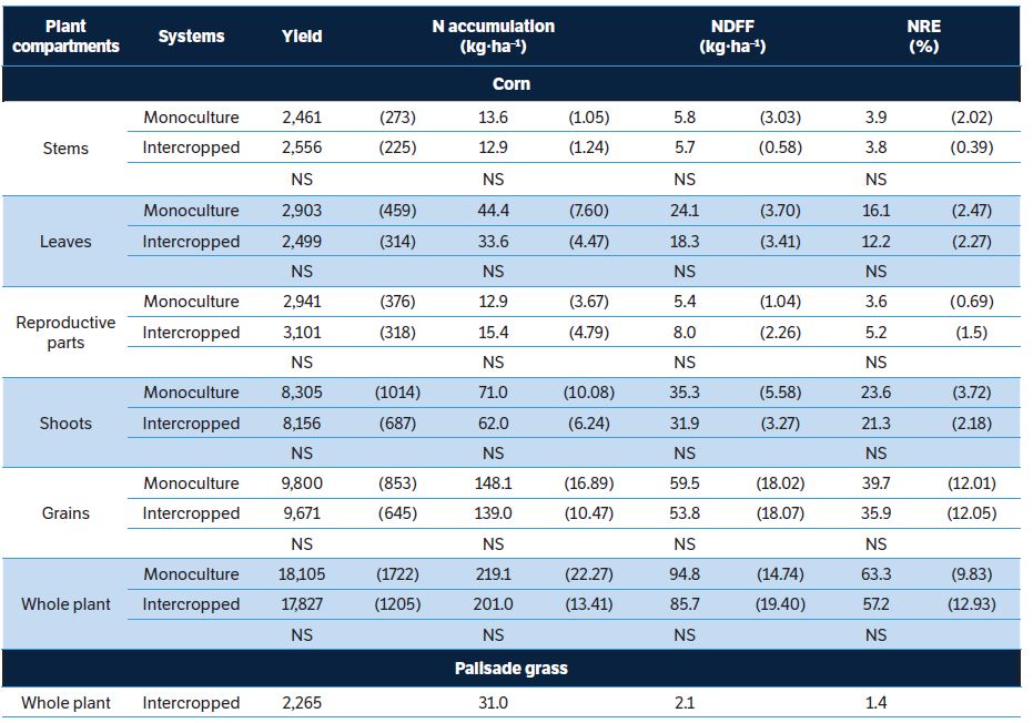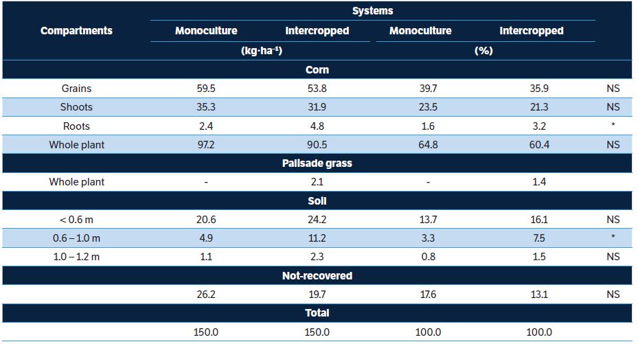 Nitrogen recovery efficiency for corn intercropped with palisade grass