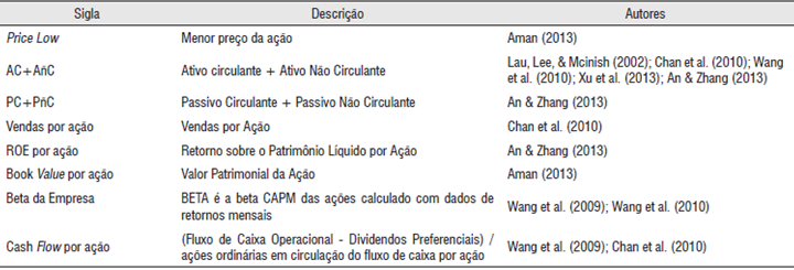 Os dados referentes as variáveis do estudo foram coletadas na base de dados Worldscope da agência Thomson®. A coleta nesta base deu-se em abril de 2014 e os valores monetários estão apresentados em dólar, conforme dispõem diretamente na base Thomson®. As variáveis estão descritas no Tabela 3.