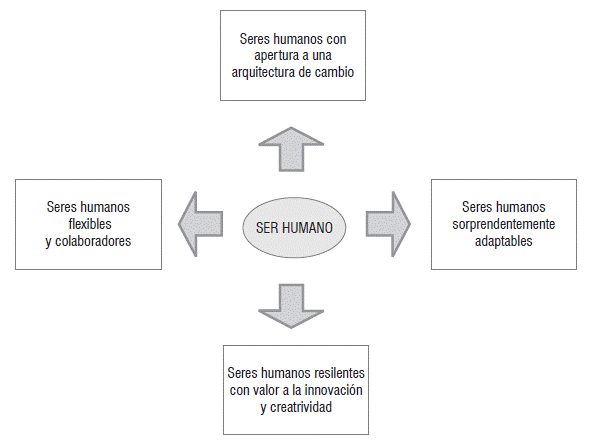 Compilando lo anterior, se hace prioritario que las organizaciones consideren al recurso humano como un elemento estratégico, que aporte un valor único a los procesos, dando origen a la ventaja competitiva. Esto se logra cuando se informa al recurso humano sobre el rumbo de la empresa y se le compromete con los resultados de esta. A su vez, el tamaño de la organización, las promociones de vacantes internas y capacidades organizativas, se consideran como estrategias de éxito (Shahibudin, 2015). La Ilustración 6 presenta una síntesis conceptual del ser humano de cara al siglo XXI.