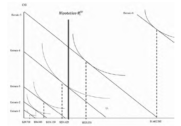 •El parámetro ∑ θiCV se asume arbitrariamente (por su subjetividad) utilizando dos valores hipotéticos para interpretación: $0 y $300.000. En la práctica esto es el gasto de subsistencia en arrendamiento (imputado o efectivo) mensual.