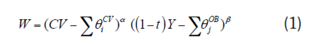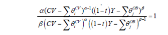 • Los valores ∑ θiCV y ∑ θjOB son valores exógenos establecidos como los niveles mínimos de “consumo de vivienda” y de “otros bienes” o de subsistencia.