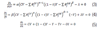 Resolviendo el problema se obtienen las condiciones de primer orden respecto a cada variable control (aplicando Lagrangiano