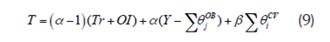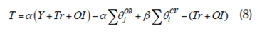 Donde T denota la carga impositiva (tY) para un individuo representativo. Por lo tanto, (7) y (8) constituyen las soluciones de política óptima