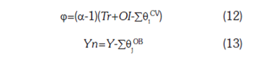 Una estimación por el método de mínimos cuadrados ordinarios (o cualquier alternativa de pronóstico lineal) nos permite obtener una aproximación a los coeficientes φ y α, los que a su vez nos proporcionan información suficiente para calcular por residuo el financiamiento necesario (Tr+OI). Por despeje algebraico de la expresión (12) es equivalente a la siguiente: