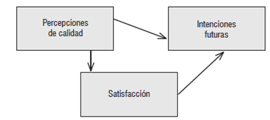 En términos generales, las variables que caracterizan un servicio podrían catalogarse en: percepciones de calidad, satisfacción y comportamientos futuros (Vergara-Schmalbach, Quesada & Blanco, 2012), cuyas relaciones o efectos causales se pueden resumir en esquema estructural general planteado en la Ilustración 1 (Vergara-Schmalbach, Quesada & Blanco, 2011).