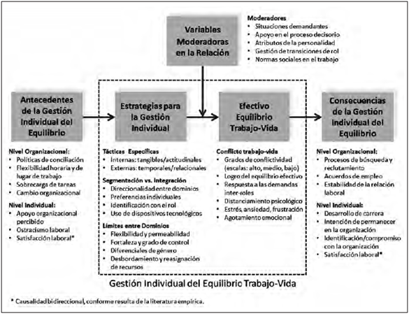 Como se puede observar, las investigaciones sobre variables moderadoras que impactan en la relación entre las estrategias para la gestión individual y el efectivo equilibrio trabajo-vida aún son demasiado incipientes y se encuentran en proceso de desarrollo. Pocas investigaciones han examinado estos efectos moderadores, por lo que se evidencia la necesidad de incorporar en las futuras agendas de investigación el estudio sistemático de aquellas variables que moderan o condicionan el efecto de la gestión individual sobre el logro del efectivo equilibrio trabajo-vida.