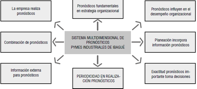 Resumen: El objetivo del presente artículo de investigación es presentar un sistema multidimensional de pronósticos para las pymes industriales de Ibagué (Tolima, Colombia) a través de la caracterización de estas herramientas en dichas empresas. Se utilizó el método mixto de investigación que comprendió elementos cualitativos y cuantitativos. La muestra fue de 42 empresas pequeñas y medianas seleccionadas a través del muestreo aleatorio estratificado de una población de 93 organizaciones. Las técnicas de investigación utilizadas fueron la observación directa, una encuesta y entrevistas a los directivos de estas pymes. El resultado de este proyecto de investigación fue la propuesta de un sistema multidimensional de pronósticos para las pymes de Ibagué, que incluyó aspectos relacionados con la importancia de las predicciones en la estrategia y el desempeño organizacional, capacitación y software de pronósticos, y exactitud y combinación de los pronósticos, todos ellos como parte de la dimensión “planeación y estrategia de pronósticos”.