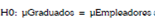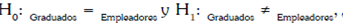 Con la información de las muestras se procedió a realizar una inferencia para la diferencia de los promedios de importancia de cada competencia en los dos grupos (Empleadores y Graduados) y tipo de competencia (Genéricas y Especificas). Además, con el apoyo de la estimación puntual, se identificaron las cinco competencias que tienen el mayor promedio de importancia para cada grupo y en cada tipo de competencia. Se utilizó una prueba de hipótesis a un nivel de significancia del 5%, lo cual permitió identificar las competencias que presentan diferente media.