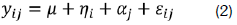 Dónde es la observación j del sujeto i; es una componente para todo i y j, es el efecto aleatorio de sujeto; es el efecto fijo de un determinado momento del tiempo; y es un efecto aleatorio de error (ArnauGras, 2007).