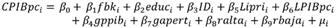 La estimación se realiza partiendo de datos panel para llegar a datos en corte transversal, lo cual lleva a obtener estimadores de efectos fijos entre grupos (between), que identifican efectos de largo plazo y permiten eliminar la heterogeneidad no observada. Este método lleva a que las variables estacionarias se encuentren distribuidas alrededor de su valor de largo plazo, y permite eliminar el efecto de los ciclos en las variables (Rosales et al, 2010). El IPRI se toma en ausencia de una estadística de DPI, siendo relevante tomar una proxy que permita evitar los errores en la estimación que conduzca a un sesgo en el resultado del estimador.