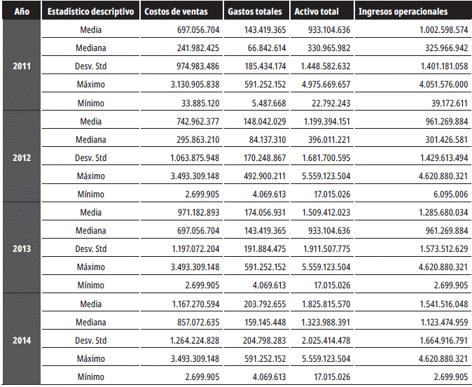 Los estadísticos descriptivos de las variables incluidas en el modelo DEA-CCR se muestran en la tabla 2.