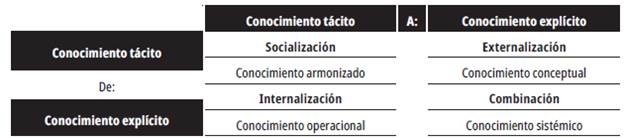 De acuerdo con García (2004), Nonaka y Konno (1998) y Rincón (2017), la conversión del conocimiento se da de cuatro formas: