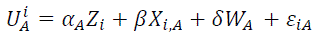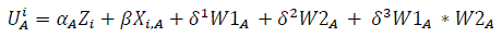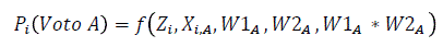 (1)Donde UAi= utilidad del elector i de votar por elpartido A; Zi= característ icas del ele ctor i; Xt A = características del partido A relativas al elector i y WA = costo de oportunidad de votar por el partido A. A partir de la especificación en (1), se debe estimar un set de β y δ y j sets de α, uno por cada par tido político.