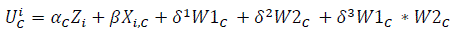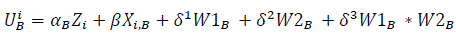 A partir de las ecuaciones (1)-(3), Álvarez y Nagler (2000) definieron el modelo de decisión electoral estratégica que permite estimar la utilidad que un elector i percibe al votar por cada una de las alternativas, una vez incorporados los costos de oportunidad: