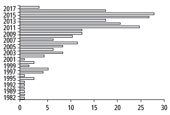 Se introdujeron en la búsqueda las categorías Economic relationship AND international business. Los resultados iniciales de búsqueda fueron filtrados temáticamente para seleccionar solo artículos publicados en revistas científicas relacionados. Además, se excluyeron otros tipos de documentos como conference papers, book chapters, books, editorials and reviews. El proceso de filtrado redujo el número inicial de resultados de 1300 artículos. Luego, se definió una ventana de observación entre 1982-2017, que incluyó una selección final de 250 artículos. Se conformó una base de datos con los títulos, abstracts, autores, revista, país y año de publicación de los artículos seleccionados, que luego fueron tratados en el programa wordstat 7.1.