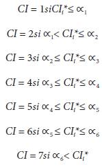 Donde ∝1 ... ∝6 son los puntos de corte o parámetros umbrales. El modelo es estimado por el método de máxima verosimilitud.
