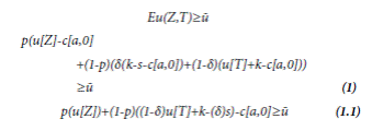 Una vez el contrato es ofrecido, A establece su restricción de participación en el contrato, condicionando su utilidad esperada Eu(Z, T) a la utilidad de reserva (ū), , es decir, de lo que podría obtener en una actividad por fuera del contrato. Formalmente, esto es:
