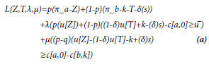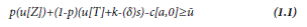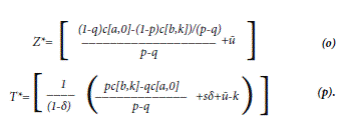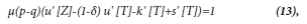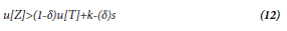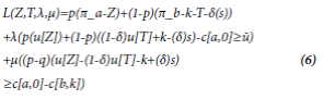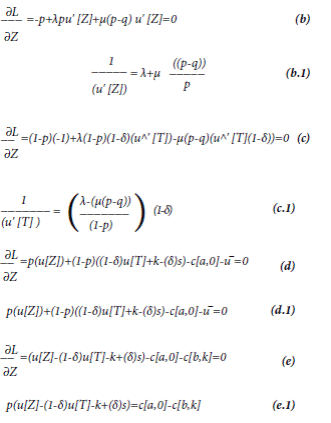 Resaltandose que k y s son montos fijos, enfrentados de esta manera al problema trivial de agencia, lo que indica que μ≠0 y que u’[Z] > u’ [T], es decir Z>T. Ahora bien, de la condicion de u’[Z], se sabe